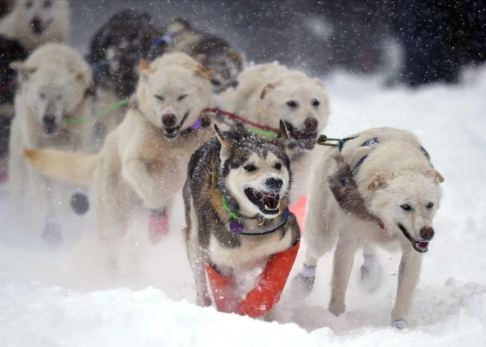 - Cưỡi xe chó Husky: Băng qua khu rừng tuyết trắng.